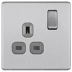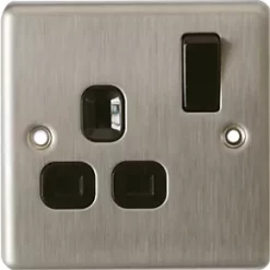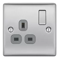 British General Evolve 13A 1-Gang SP Switched Socket Brushed Steel with White Inserts