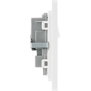 Double switched socket with colour-coded terminals and backed out captive screws for ease of installation. Fits 35mm back box, making it suitable for retro-fit replacement of existing sockets. Features low profile, screwless flat plate that clips on and off, ideal for modern interiors.