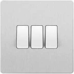 Offers ability to operate 3 different lights, while 2-way switching allows second switch to be added to circuit to operate same light from another location (e.g. at top and bottom of stairs). Features low profile, screwless flat plate that clips on and off, making it ideal for modern interiors. Easy to install, with captive screws to prevent screw loss.