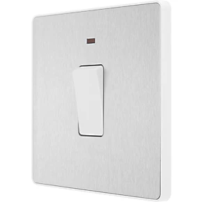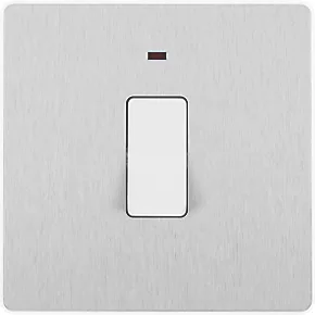 British General Evolve 20A 1-Gang DP Control Switch Brushed Steel with LED with White Inserts