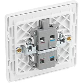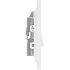 Double pole switch with flush LED indicator, designed for the connection of refrigerators, water heaters, central heating boilers and other fixed appliances. Features low profile, screwless flat plate that clips on and off, making it ideal for modern interiors.