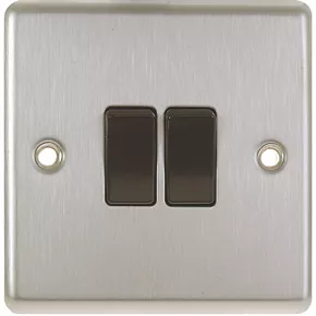 LAP 10AX 2-Gang 2-Way Light Switch Brushed Stainless Steel with Black Inserts