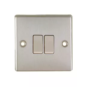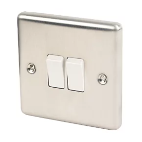 LAP 10AX 2-Gang 2-Way Light Switch Brushed Stainless Steel with White Inserts