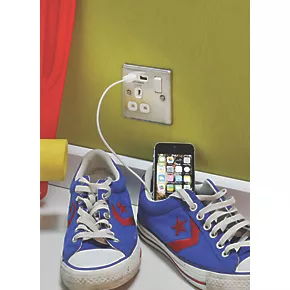 Decorative switched socket with 2 x USB charging ports. Features angled in-line terminals and includes backed out captive screws for easy installation. Ideal for charging iPads, iPhones, tablets, mobiles, cameras and more.