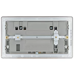 Easy to install, switched socket with USB charger. Removable, decorative screwless flat-plate and slim, clip-on profile. Supplied with 10mm spacer for fitting into a 25mm box. Ideal for redecoration projects.