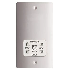 LAP 2-Gang Dual Voltage Shaver Socket 115 / 230V Brushed Stainless Steel with White Inserts