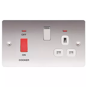 LAP 45A 2-Gang DP Cooker Switch & 13A DP Switched Socket Brushed Stainless Steel with LED with White Inserts