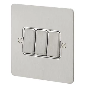 MK Edge 10AX 3-Gang 2-Way Switch Brushed Stainless Steel with White Inserts