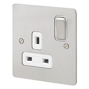 MK Edge 13A 1-Gang DP Switched Plug Socket Brushed Stainless Steel with White Inserts
