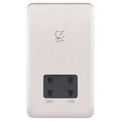 Schneider Electric Lisse Deco 2-Gang Dual Voltage Shaver Socket 115 / 230V Brushed Stainless Steel with Black Inserts
