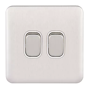 Schneider Electric Lisse Deco 10AX 2-Gang 2-Way Light Switch Brushed Stainless Steel with White Inserts