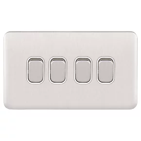 Schneider Electric Lisse Deco 10AX 4-Gang 2-Way Light Switch Brushed Stainless Steel with White Inserts