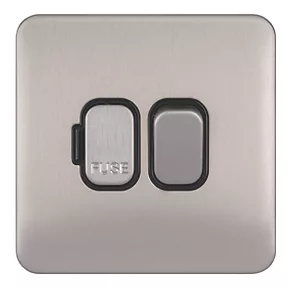 Schneider Electric Lisse Deco 13A Switched Fused Spur Brushed Stainless Steel with Black Inserts