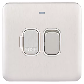 Schneider Electric Lisse Deco 13A Switched Fused Spur with LED Brushed Stainless Steel with White Inserts