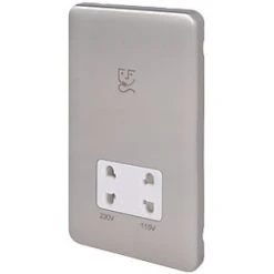 Schneider Electric Lisse Deco 2-Gang Dual Voltage Shaver Socket 115 / 230V Brushed Stainless Steel with White Inserts