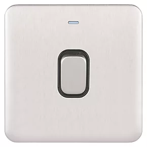 Schneider Electric Lisse Deco 20AX 1-Gang DP Control Switch Brushed Stainless Steel with LED with Black Inserts