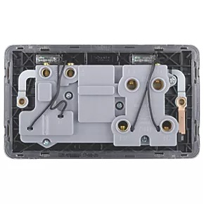 Schneider Electric Lisse Deco 45A 2-Gang DP Cooker Switch & 13A DP Switched Socket Brushed Stainless Steel with LED with Black Inserts
