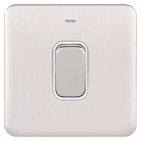 Schneider Electric Lisse Deco 50A 1-Gang DP Cooker Switch Brushed Stainless Steel with LED with White Inserts