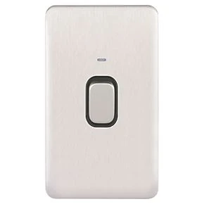 Schneider Electric Lisse Deco 50A 2-Gang DP Cooker Switch Brushed Stainless Steel with LED with Black Inserts